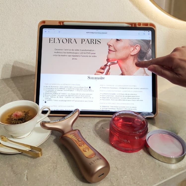 L'alliance de la technologie LED + EMS et de la Méthode Elyora Paris pour transformer votre peau aujourd'hui et préserver sa jeunesse demain.