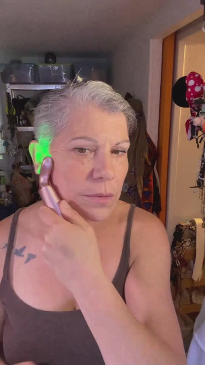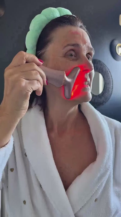 Sur peau propre, appliquez une base aqueuse (ex. Gel Conducteur au Collagène), puis faites glisser l’appareil en mouvements lents inspirés du drainage sur le visage et le cou. 5 à 10 minutes, tous les jours (minimum 3 à 5×/semaine). Gardez la même routine 4 à 6 semaines : la luminothérapie et l’EMS agissent par stimulation régulière. L’e-book offert vous guide pas à pas avec des routines prédéfinies.