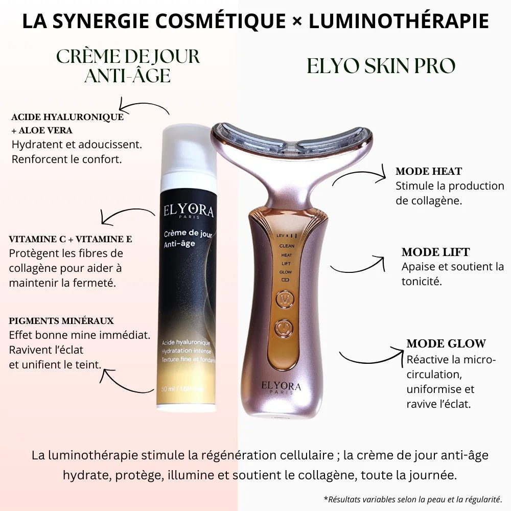 Ensemble, nos soins forment une routine complète pour ralentir les signes visibles du vieillissement cutané, tout en étant parfaitement complémentaire à l’action en profondeur de la luminothérapie sur le renouvellement cellulaire, qui agit à l’origine même de ces problématiques.