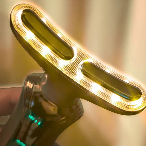 - Grande surface lumineuse pour un appareil ergonomique (style gua sha) : idéale pour travailler zone par zone sur le visage et le cou.
