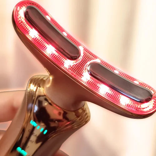 - EMS – véritables micro-courants (3 niveaux) : comme une gym douce du visage, aide à tonifier les muscles faciaux pour des contours visiblement plus fermes et un effet lifting.
